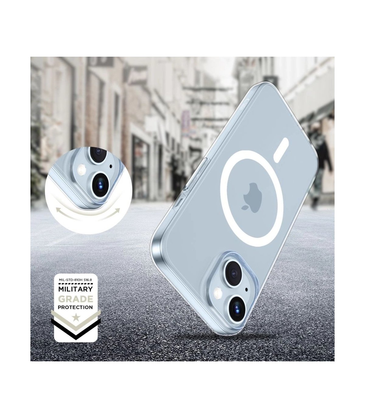 Wbudowany magnetyczny pierścień MagSafe zapewnia stabilne i bezpieczne połączenie z ładowarkami i akcesoriami MagSafe. Ładuj bezprzewodowo i korzystaj z pełnej funkcjonalności bez konieczności zdejmowania etui.