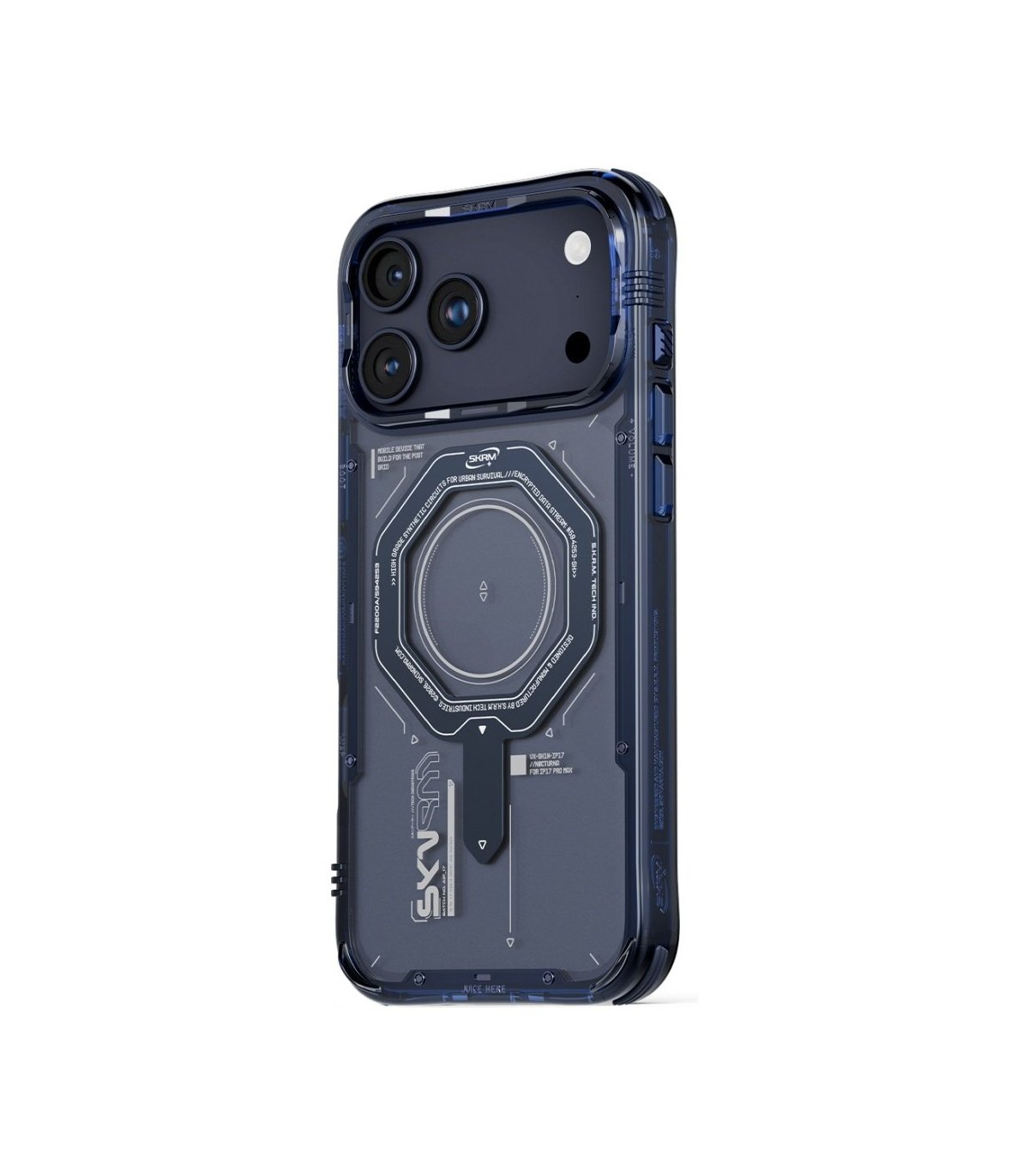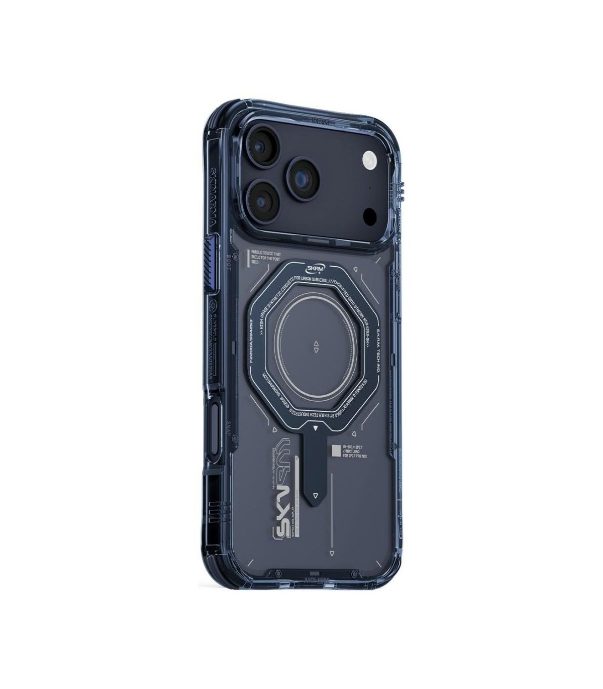 Skinarma Magma to solidne, półprzezroczyste etui w głębokim niebieskim kolorze, zaprojektowane specjalnie dla iPhone 17 Pro Max. Zapewnia ochronę 360° z wzmocnionymi narożnikami, podniesionymi krawędziami ekranu i aparatu oraz metalicznym pierścieniem Mag-Charge Ring kompatybilnym z akcesoriami MagSafe. Etui wyposażono w aluminiowe przyciski oraz wymienne uchwyty na smycz, co pozwala na personalizację i wygodne noszenie. Połączenie nowoczesnego designu z praktyczną ochroną na co dzień.