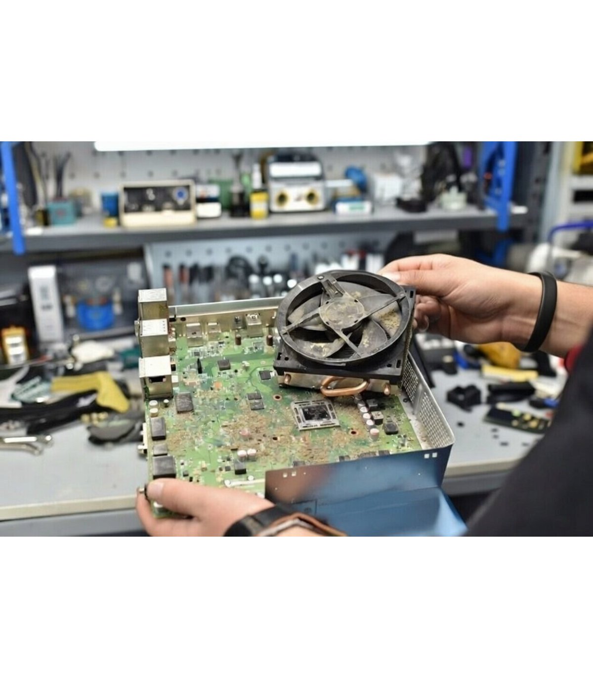 Zakres usługi: Pełne czyszczenie wnętrza konsoli Xbox One S + wymiana pasty termicznej na wysokiej jakości pastę + dokładne wyczyszczenie radiatora, wentylatora i układu chłodzenia + testy temperatur po usłudze.