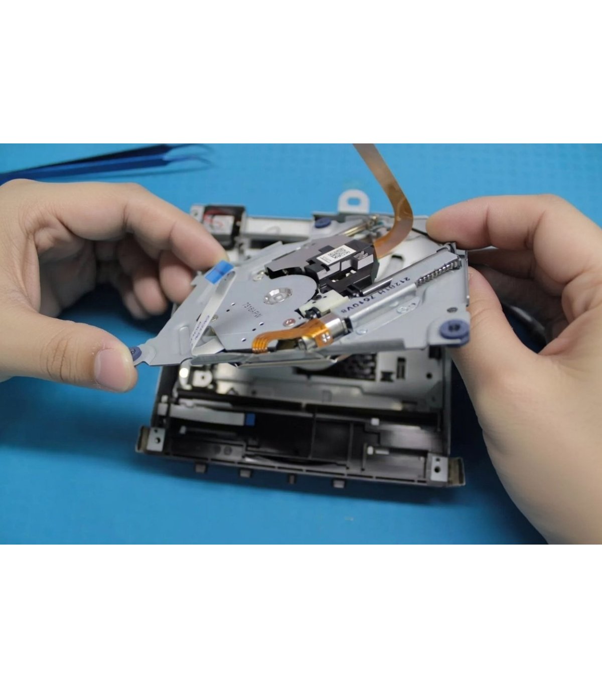 Demontaż starego napędu, precyzyjny montaż nowego, regulacja mechanizmu i lasera, czyszczenie pozostałych elementów + testy na płytach Blu-ray UHD 50/100 GB i DVD.